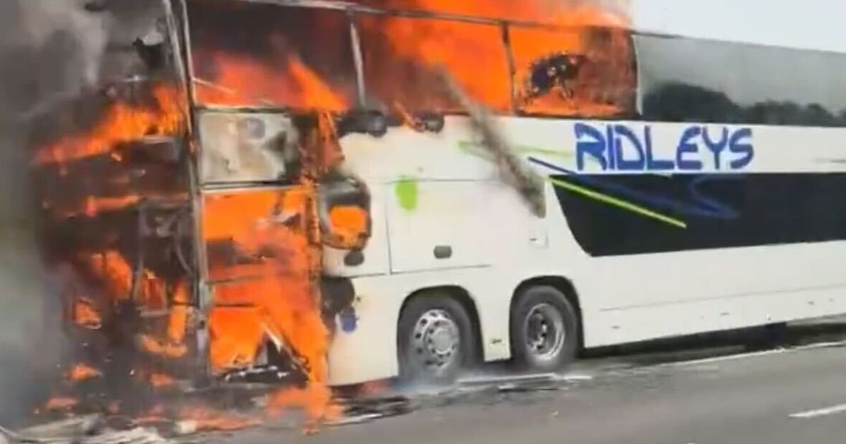 Witnesses have captured videos showing the bus engulfed in flames on the M6. The rear section of the bus is entirely consumed by fire, emitting thick black smoke into the surroundings.