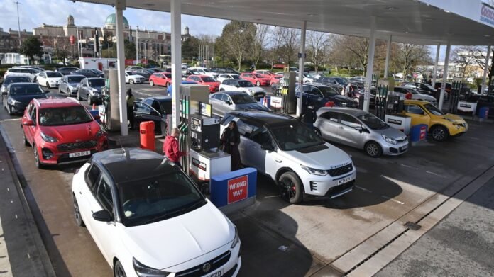 Petrol stations are experiencing long lines of vehicles as motorists hurry to refuel amidst concerns of escalating fuel prices due to the ongoing conflict in the Middle East.